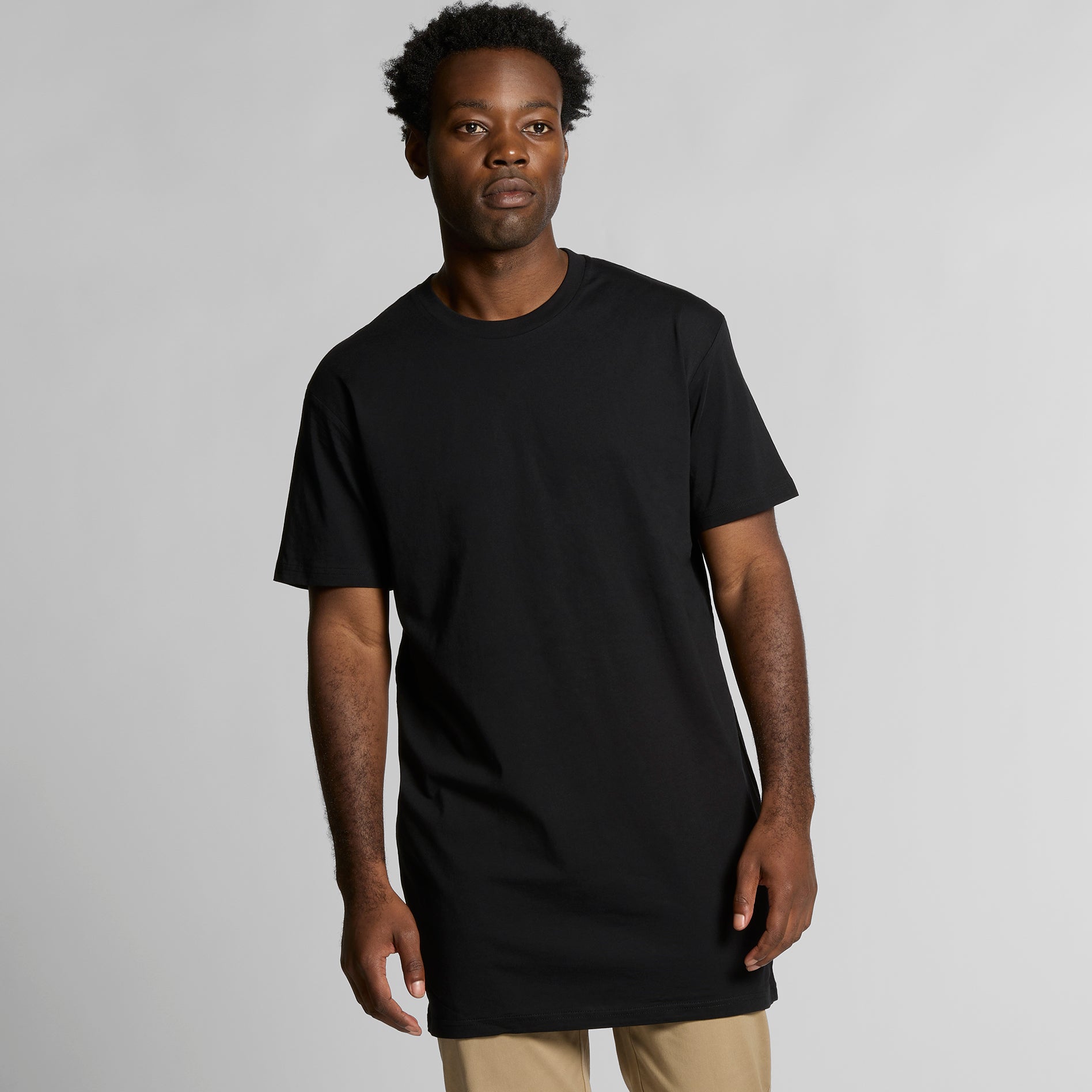 Construction: Extra long body roughly 10cm longer than our standard tees, neck ribbing, side seamed, shoulder to shoulder tape, double needle hems, preshrunk to minimise shrinkage